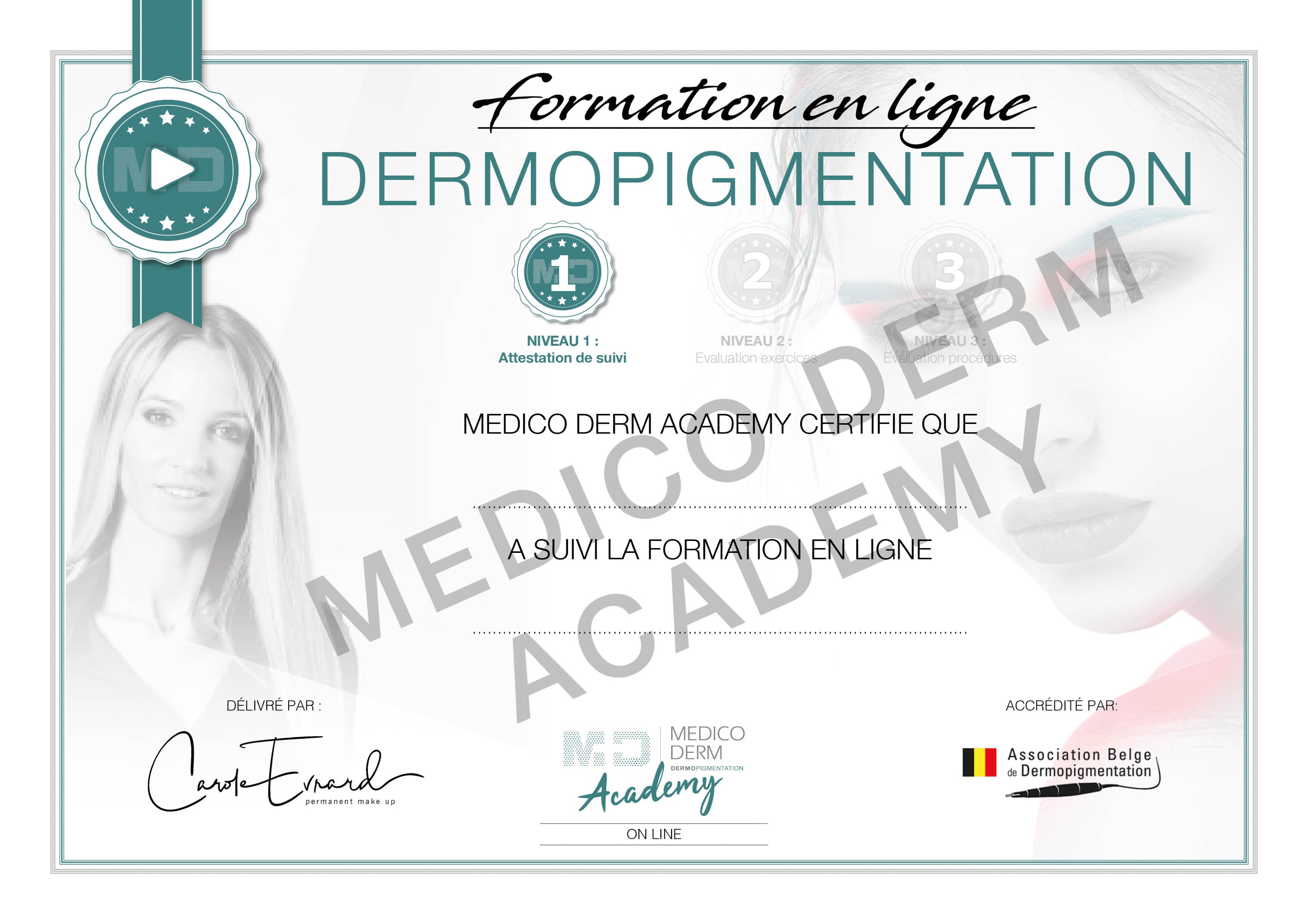 L'intérêt d'une formation est d'obtenir, en fin de session, votre certification de réussite dans le but d'exercer en toute légalité. Chez Medico Derm Academy, tous nos modules sont certifiants, et comptabilisés dans les heures de formations obligatoires à suivre pour intégrer l'Association Belge de Dermopigmentation (A.B.D.).